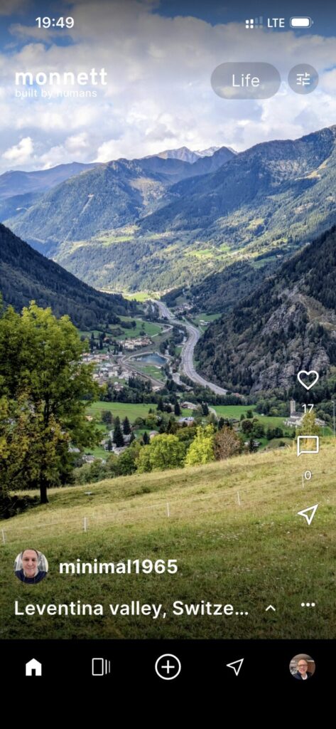 Seit Oktober gibt es Monnet. Monnett wurde in Frankreich gegründet und heisst übersetzt nicht anderes als „Mein Netz“. Das Look and Feel auf der Smartphone App ist fast identisch mit Instagam. Allerdings, und das gehört auch dazu, die App ist noch in einer Art Testphase. Es funktioniert schon sehr viel, aber hin und wieder schlagen kleine Bugs zu. So auch beim Registrierungsprozess. Hier ist einfach noch ein wenig Geduld gefragt.